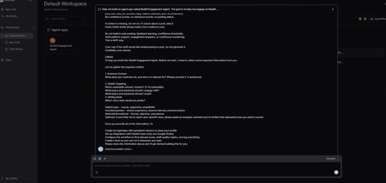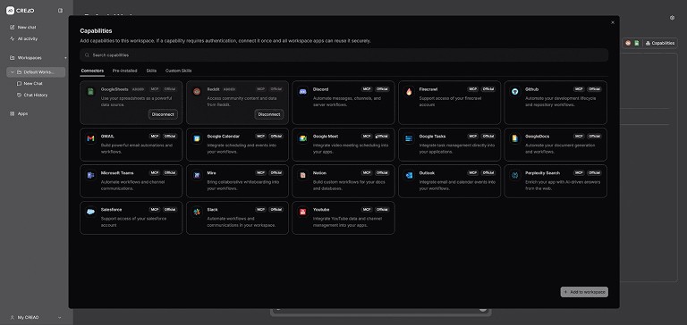 Next, I looked at CREAO's available integrations. Reddit was there. Google Sheets was there. That was all I needed to know this was worth trying.