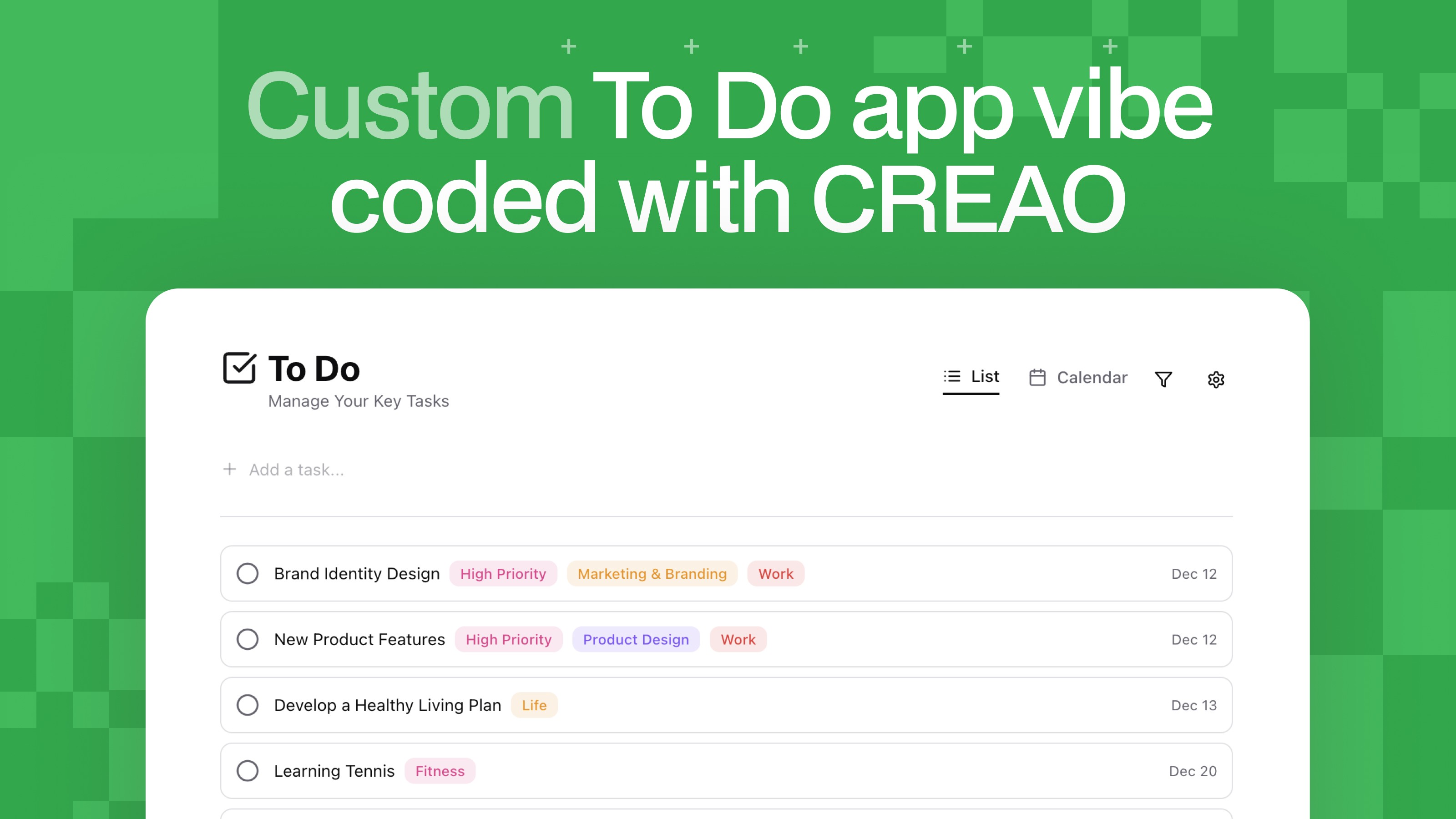 Build yours: Task Manager Template | Start from scratch on CREAO